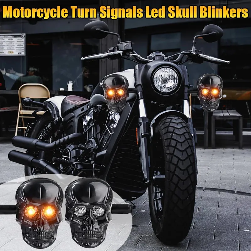 Super Bright : our 2025 skull shape led turn signal light, low power consumption, high brightness, not easy to heat up. Motorcycle amber led indicator lights are not only suitable for night driving, but also very bright and conspicuous in daytime